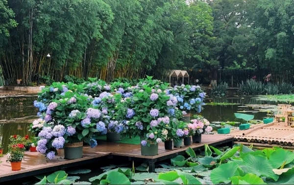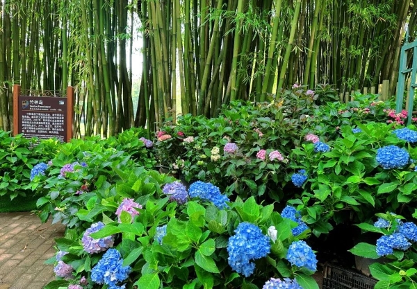 Hydrangeas, with their brilliant colors and full blossoms, when in full bloom, resemble a beautiful oil painting. In 2023, Cuihu Park planted hydrangeas on Zhulin Island for the first time. Since then, this romantic splash of color has become an unforgettable summer dream in everyone's hearts.