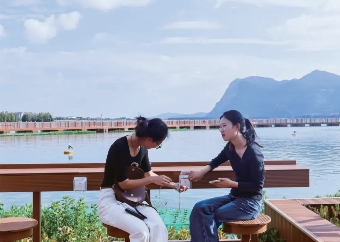 除了欣赏美景,滇池开合浮桥旁还设有观景平台和休息区,游客们可以在这里驻足停留,拍照留念。岸边的滇岸咖啡将会提供文创咖啡、小吃、文创纪念品等产品,让游客们在游玩的过程中,品尝到当地的美食,购买到具有纪念意义的物品。