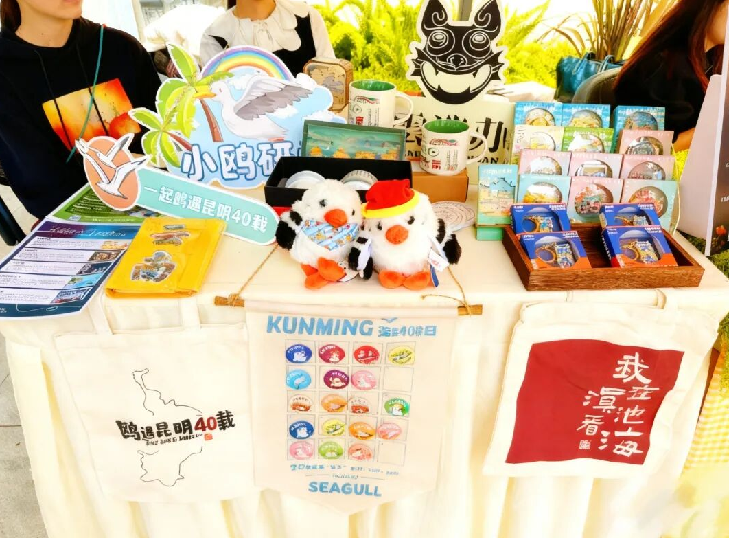 海埂公园的“鸥遇昆明40载”文创快闪店,打造集历史回顾、情感共鸣与文创消费于一体的记忆空间。展示人鸥共处珍贵影像,推出限定文创系列产品。