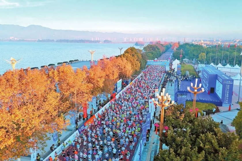 当春城清晨的第一缕阳光穿透滇池的薄雾,当海埂大坝的海鸥与万众奔跑的脚步同频共振时,一期一会,新一年的上合昆明马拉松正式拉开奔跑的序幕。