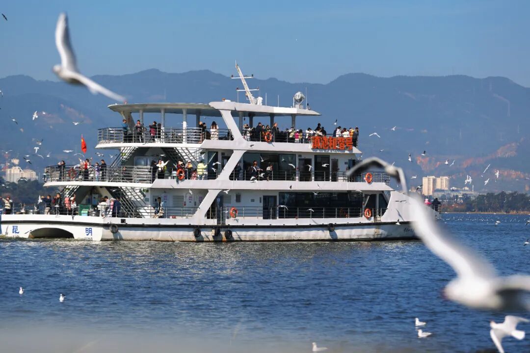 大批红嘴鸥每年都到昆明过冬