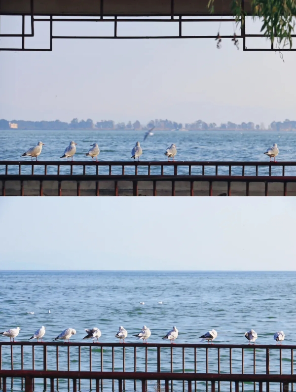 暖了身心,便可全心拥抱风景。在海埂公园,做一名专注的观察者。每年冬季,来自西伯利亚的红嘴鸥如约而至滇池,形成昆明最动人的生态画卷。