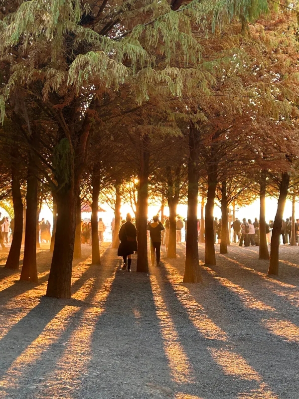 距离海埂不远的海洪湿地公园,冬季水杉由绿转红,倒映水中,形成一片静谧的深红呼吸场。这里是体验“森林浴”概念的理想场所。