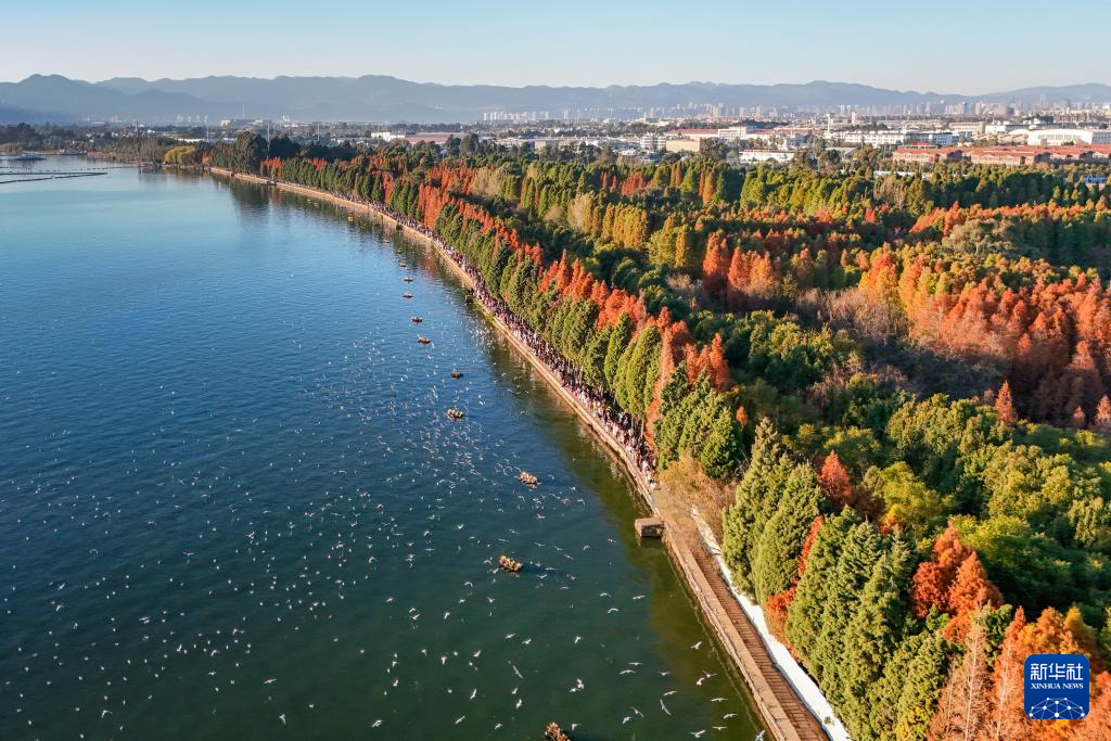 近年来,昆明滇池水域的水生态、水环境持续改善,重现“景美、鸥飞、鱼跃”的生动画卷,吸引众多游客前来打卡。