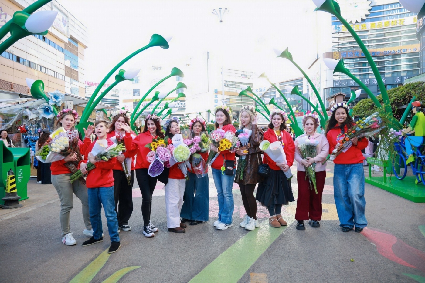 တုပ်နန်ပန်းများပြခန်းတွင် ပြိုင်ပွဲဝင်များသည် တုပ်နန်ပန်းစျေး၏ ပန်းခင်းတစ်ကွက်မှ ကမ္ဘာလုံးဆိုင်ရာ ပန်းလုပ်ငန်း၏ စံပြအဖြစ်သို့ ခုန်ပေါက်ကျော်လွှားသော တိုးတက်မှုအကြောင်း သိရှိခဲ့ကြသည်။ "ယွမ် ၁၀၀ ဖြင့် ပန်းဝယ်ယူခြင်း စိန်ခေါ်မှု"တွင် ပြိုင်ပွဲဝင်များသည် တရုတ်စကားဖြင့် ပန်းရောင်းချသူများနှင့် ဈေးဆစ်ခဲ့ကြကာ ပန်းရောင်းချသူများလည်း ပန်းစည်းတစ်စည်း သို့မဟုတ် နှစ်စည်းကို လက်ဆောင်အဖြစ် ပိုပေးခဲ့သည်။ "သူတို့ ကျွန်မတို့ရဲ့ ပန်းတွေကို ကြိုက်တာမြင်ရတော့ အရမ်းပျော်တယ်။" "ဒါက ယူနန်လူရဲ့ ဧည့်ဝတ်ကျေပွန်မှုပုံစံပဲ" ဟု ပန်းရောင်းချသူတစ်ဦး ပြုံးပြုံးလည်း ပြောဆိုခဲ့သည်။ သင်းပျံ့နေသော ပန်းရနံ့များကြား မတူညီသော ဘာသာစကားများနှင့် ယဉ်ကျေးမှုများသည် နွေးထွေးသော ပဲ့တင်ထပ်ကို ရရှိခဲ့သည်။