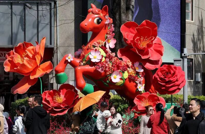 Events like the Jingxing Flower and Bird Art Festival and the Yunrui Coffee and Flower Market added novel attractions to the historic streets. Delicious foods such as Jianshui baked tofu, Dai-style grilled chicken, and grilled pineapples filled the air with enticing aromas, offering a true taste of Yunnan. The Year of the Horse auspicious display on Nanping Street and the New Year decorations at Zhongai Fang exuded festive spirit, becoming must-visit photo spots for tourists. The dual engines of "cultural experience + holiday vibrancy" have ignited Kunming's Spring Festival consumption boom, showcasing the "Spring City charm, where once you come, you don't want to leave" to the world.