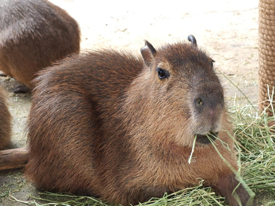 She gave the internet's favorite "chill icon", the capybara, a good scratch, and the laid-back creature played along like a pro—pure healing material.