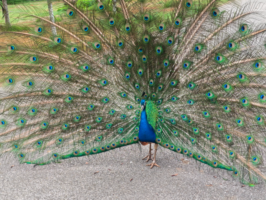 在好天气里,目睹孔雀缓缓开屏,彩羽流光的浪漫时刻。