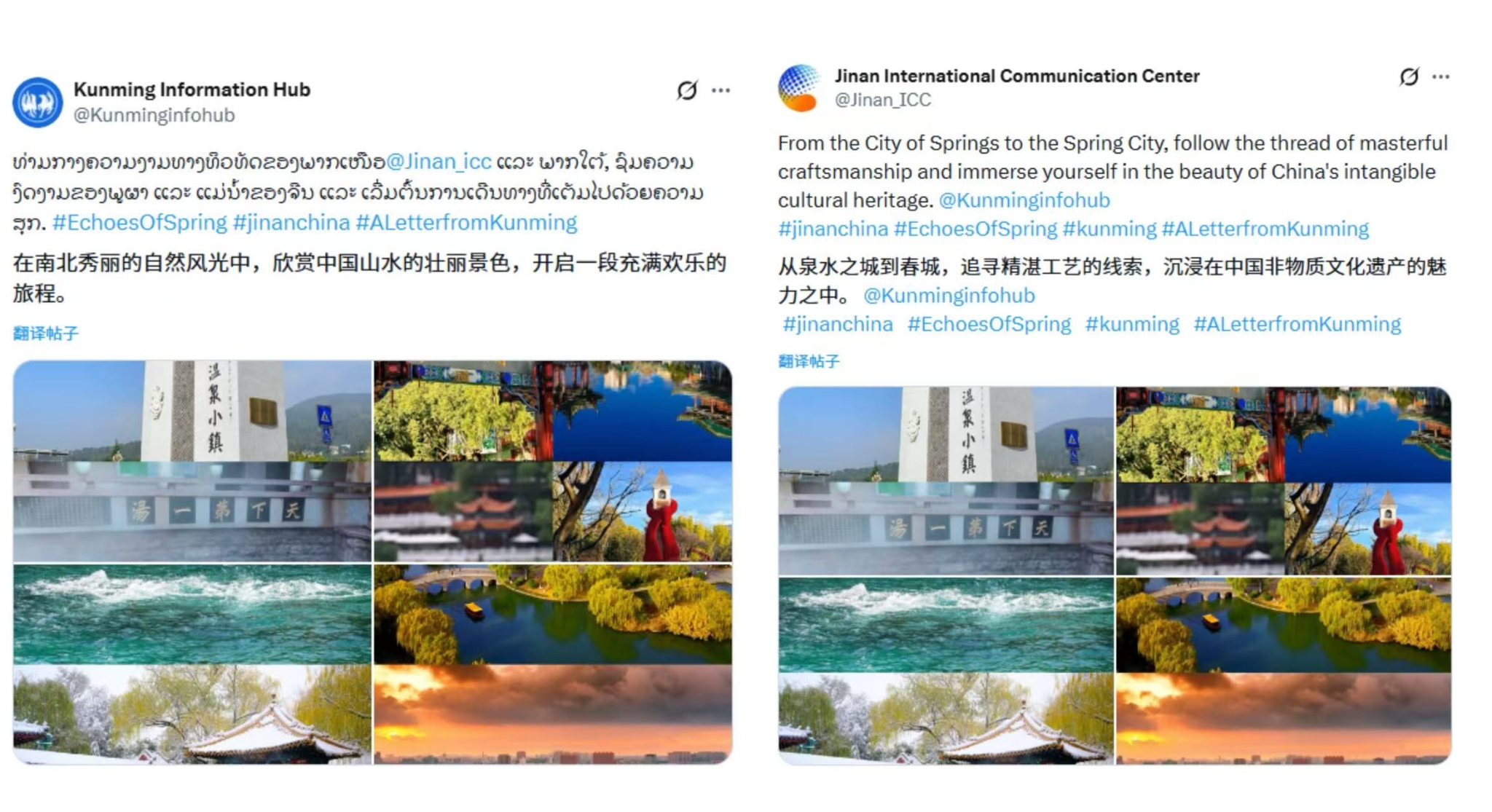 Screenshot of the targeted collaboration between Kunming International Communication Center and Jinan International Communication Center on "Northern and Southern 'Spring Cities'. "