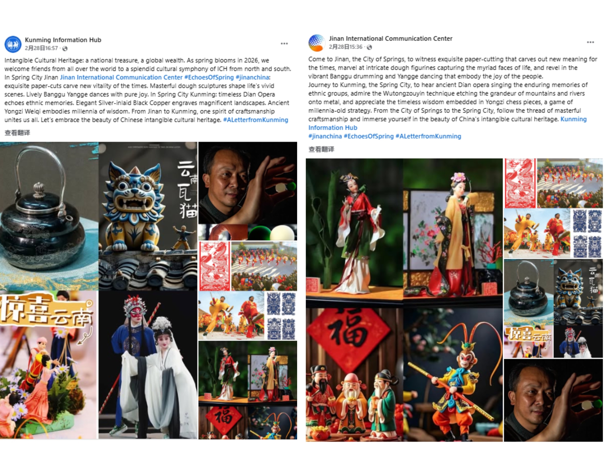 Screenshot of the targeted collaboration between Kunming International Communication Center and Jinan International Communication Center on "Intangible Cultural Heritage Integration."