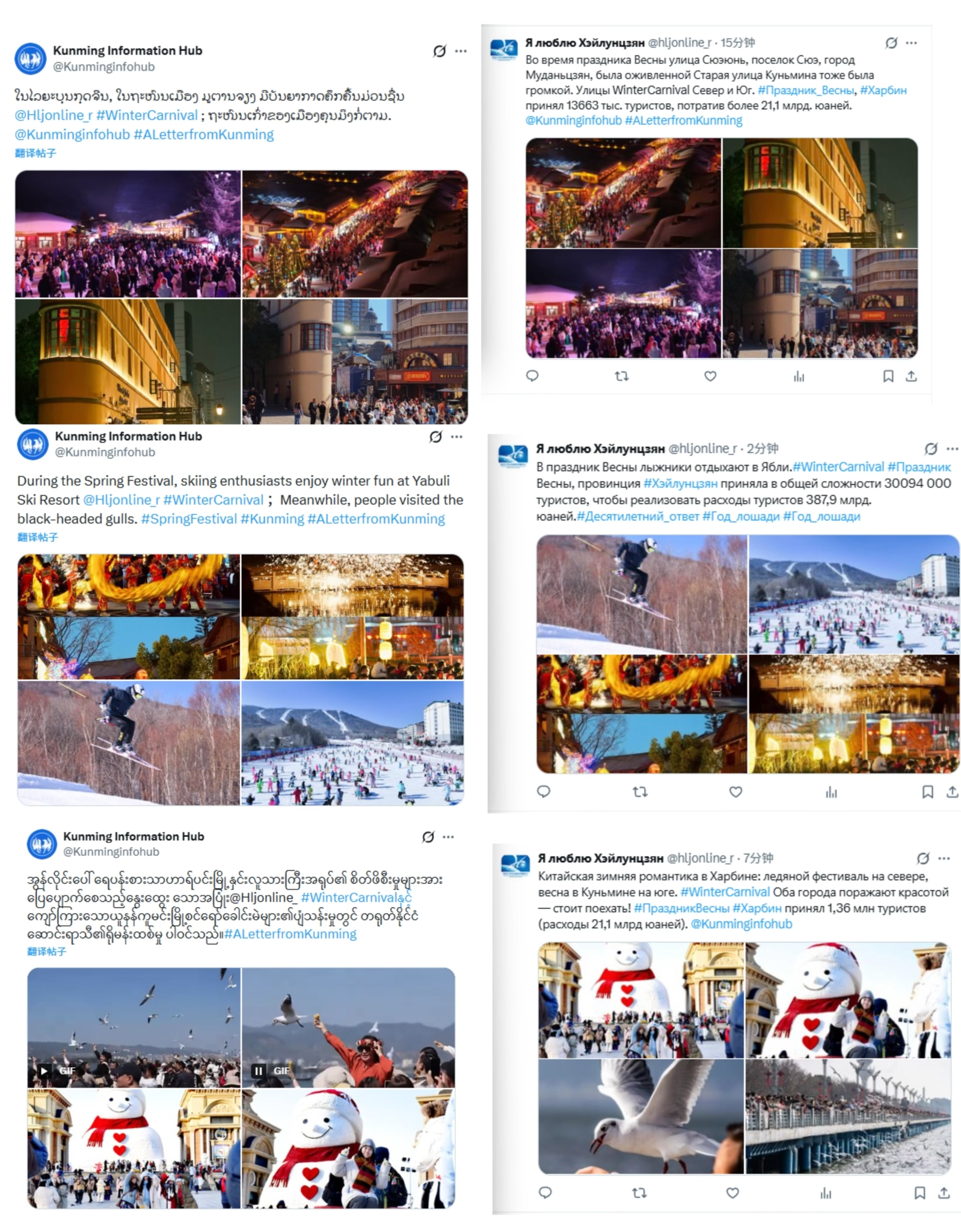 Screenshot of the targeted collaboration between Kunming International Communication Center and Heilongjiang Northeast Asia International Communication Center on "One Defined by Ice, the Other by Warmth".