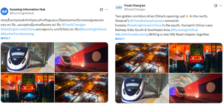 Screenshot of the targeted collaboration between Kunming International Communication Center and Chinese Business International Communication Center on "China-Laos Railway and China Railway Express."