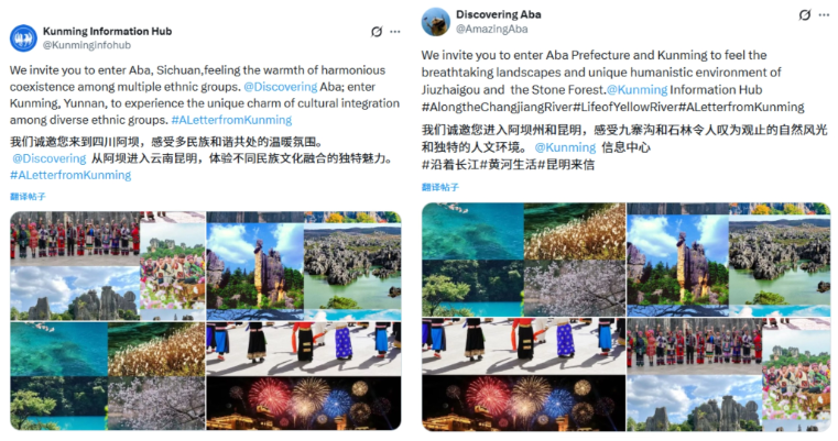 Highlighting natural wonders, the initiative juxtaposed Kunming's Stone Forest karst landscape with Aba's Jiuzhaigou scenery, showcasing the Yunnan-Sichuan region's natural beauty. It also celebrated ethnic diversity, portraying everyday life in Kunming's multi-ethnic communities and the mutual support among Aba's populations. Grounded in natural landscapes and ethnic culture, the collaboration conveyed a compelling message about Chinese ethnic unity and progress through authentic storytelling.